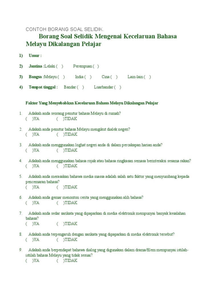 Contoh Borang Soal Selidik
